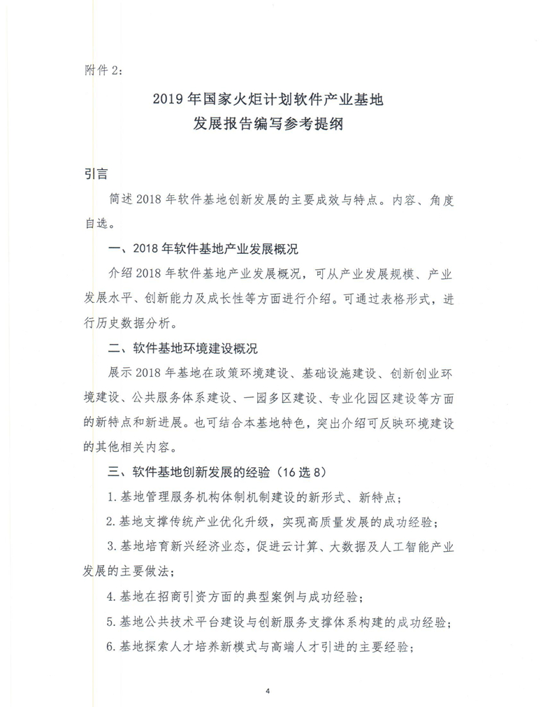 關于組織編寫2019年國家火炬計劃軟件產業基地發展報告的通知