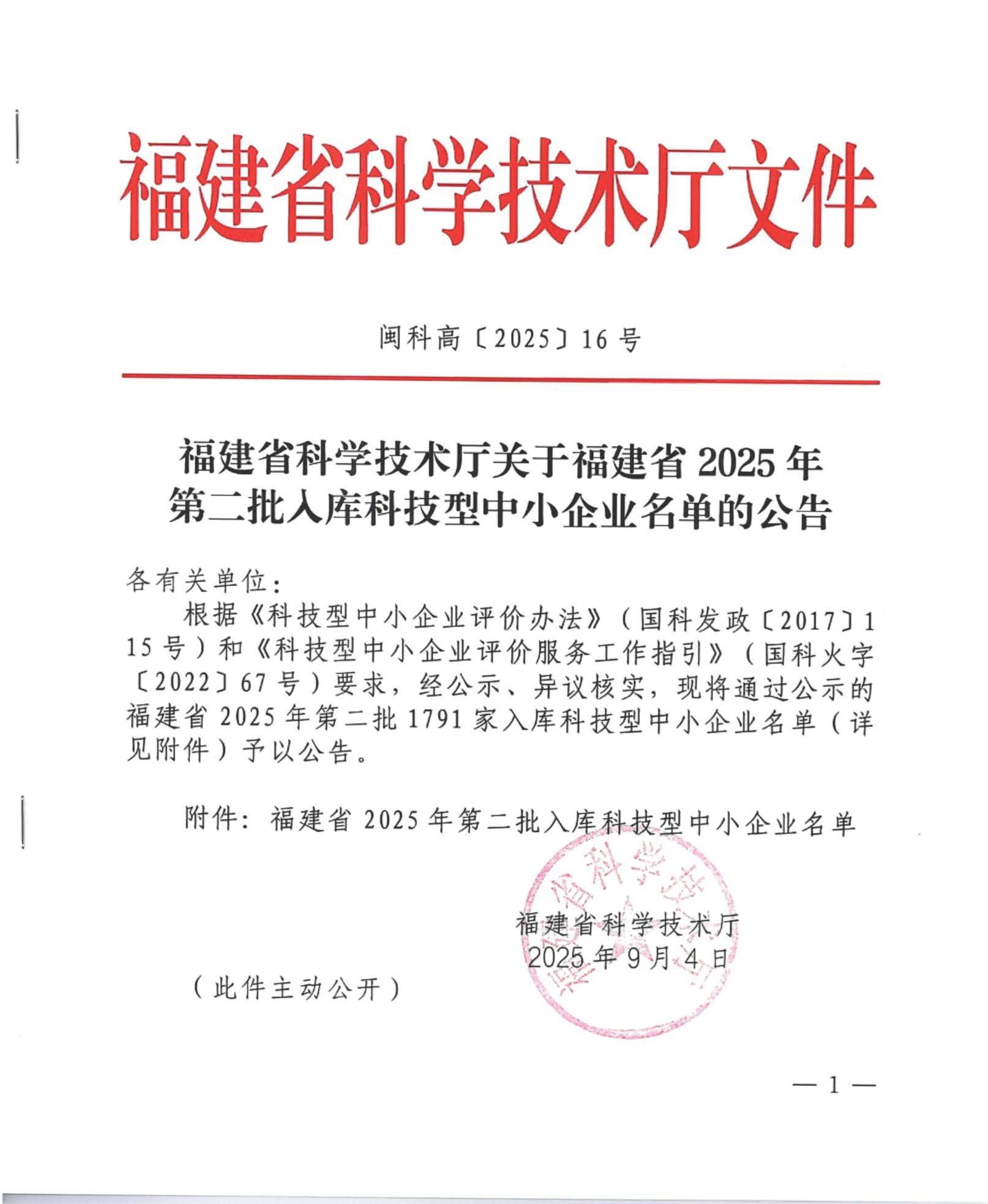 福建省2025年第2批入庫科技型中小企業名單公告正文.jpg PICTURE