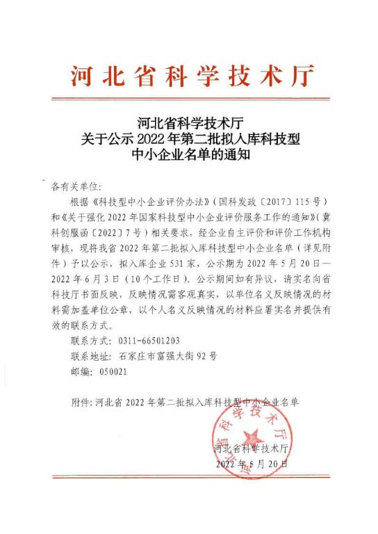 河北省2022年第2批擬入庫科技型中小企業名單公示正文.jpg PICTURE