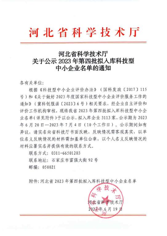 河北省2023年第4批擬入庫科技型中小企業名單公示正文.jpg PICTURE